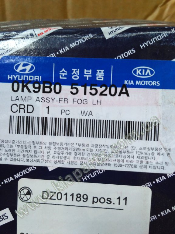 0K9B051520A - Фара противотуманная левая